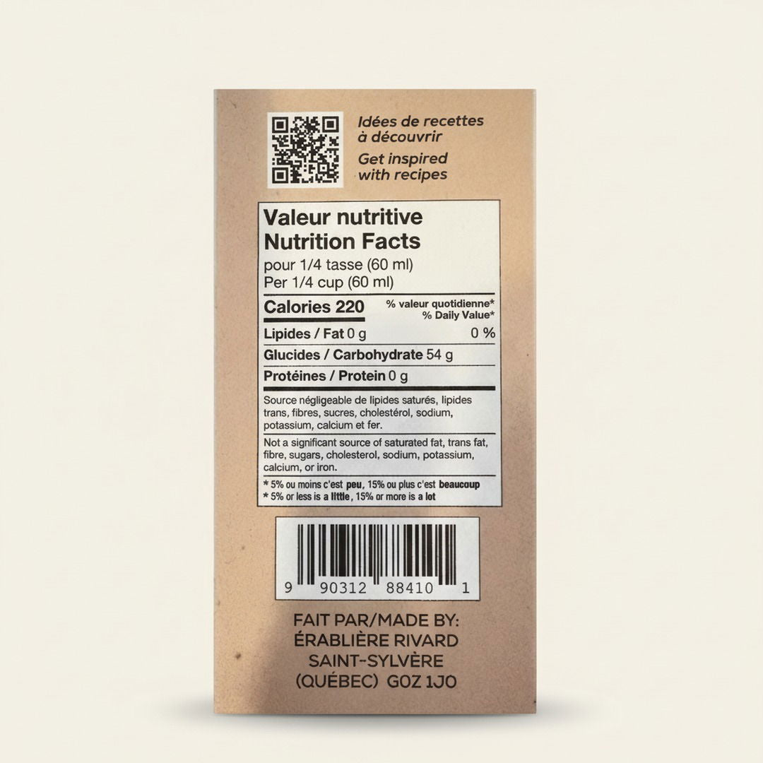 - Fabriqué à partir de sirop d’érable pur du Québec
